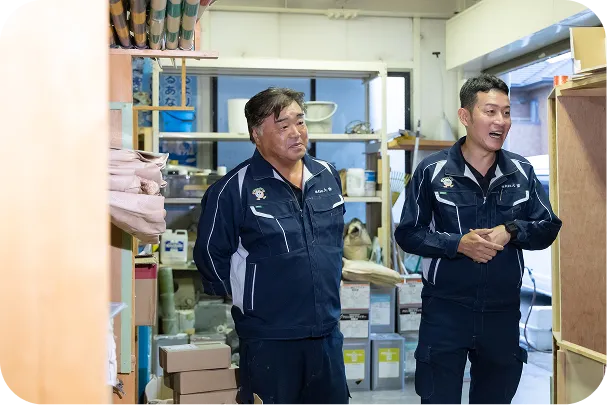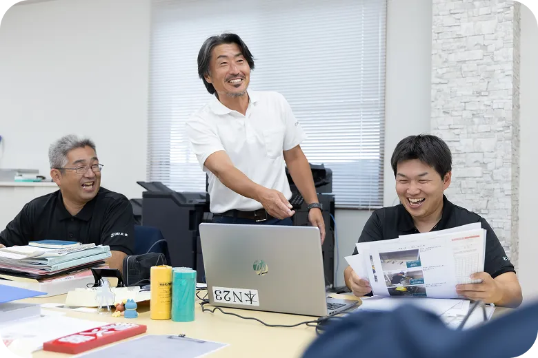 一番は「相談しやすさ」です。入社後半年~1年間は先輩がマンツーマンで教えてくれるので、未経験でも安心でした。困ったことがあればすぐに相談できますし、社長も現場経験者なので、具体的なアドバイスをくれます。残業がほとんどないので、プライベートの時間もしっかり確保できています。