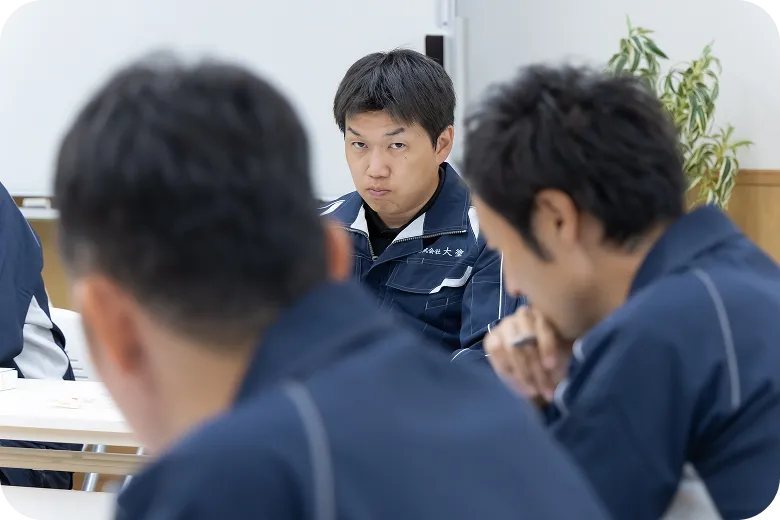 当社が求めるのは「素直で意欲のある人」です。建築の知識や経験よりも、まずは前向きに学ぶ姿勢を大切にしています。指導する先輩たちも面倒見がよく、パワハラのない穏やかな環境です。